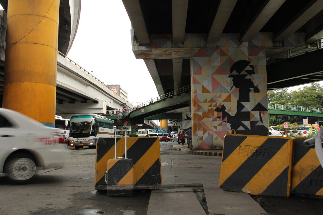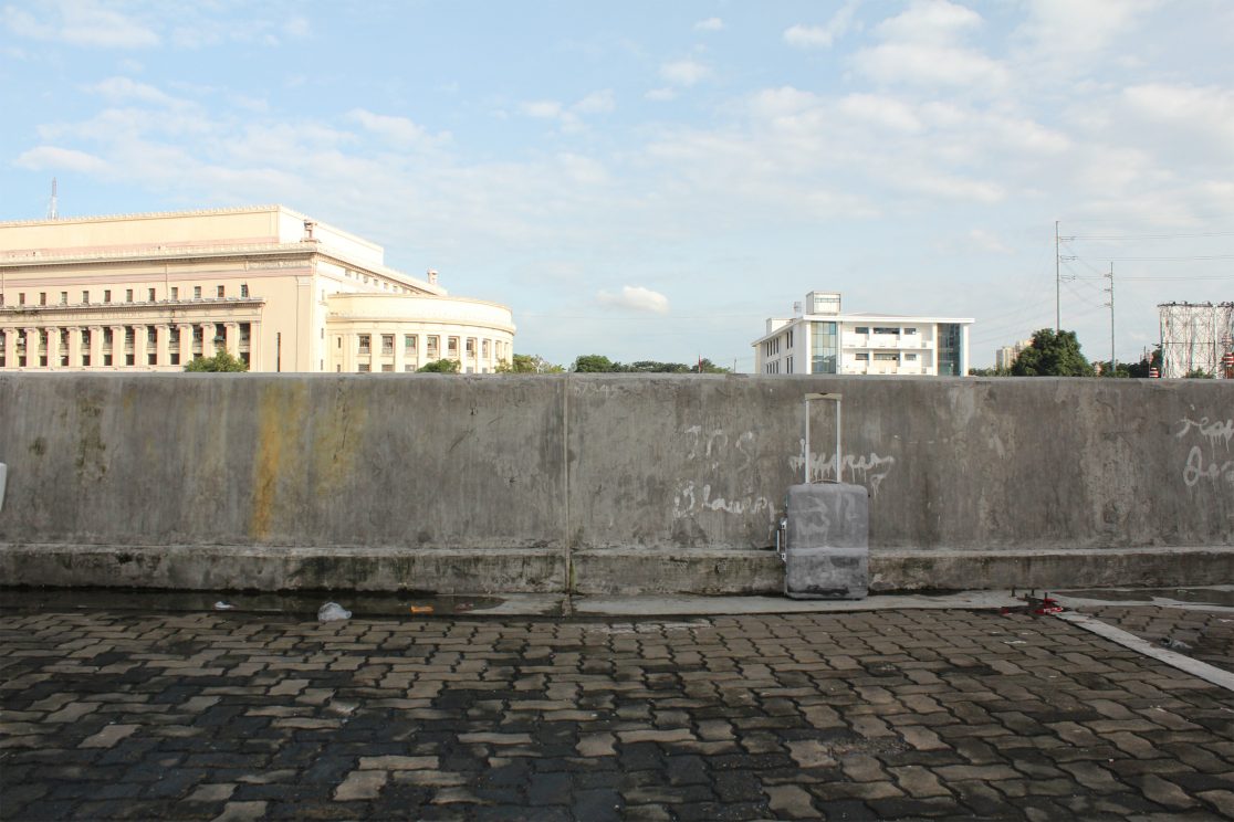 Rolling to (project)/ 2012〜 / 400×200×h.900/ places visited, a suitcase wrapped by paper which printed out the place/ /FLYOVER YOKOHAMANILA Artist residence program in Philippines