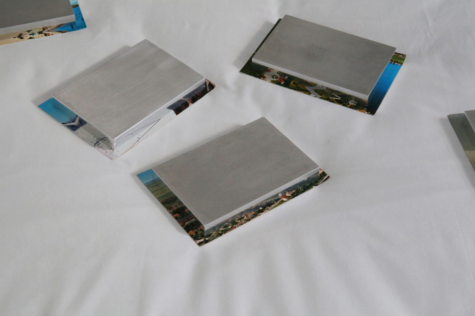 スティルアブセント/2019年/148×105×15mm/ポストカード、アルミニウム, ベッド/GlogauAIR /ベルリン、ドイツ