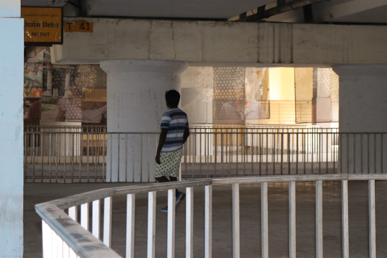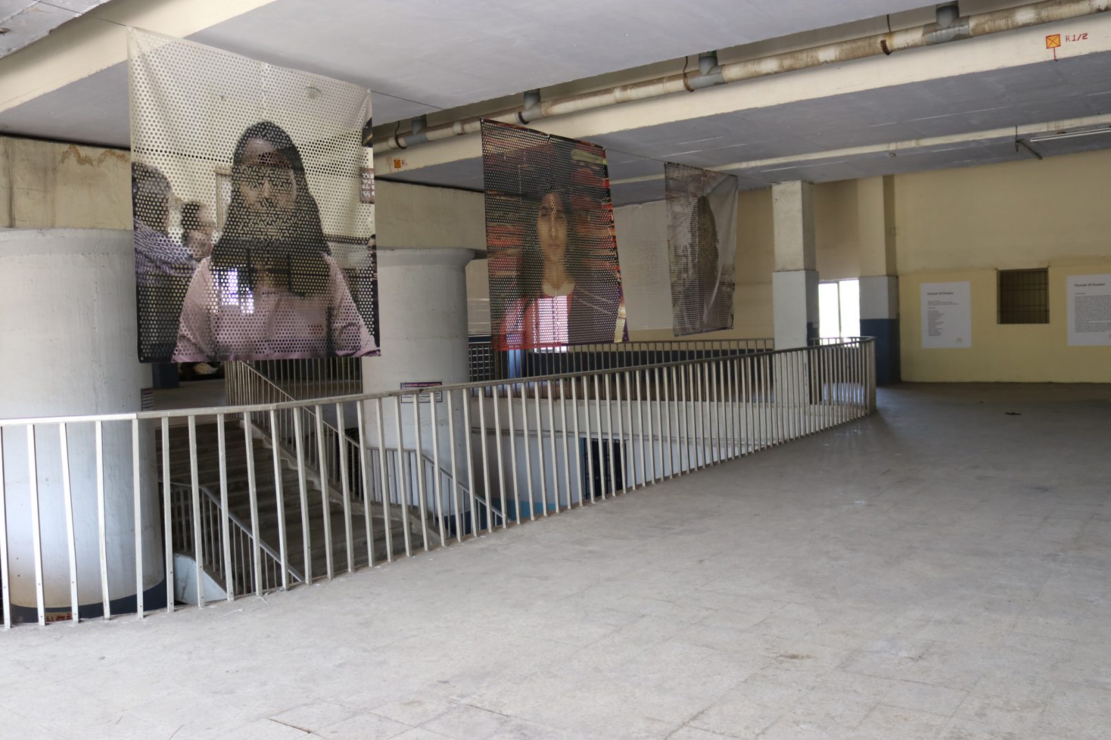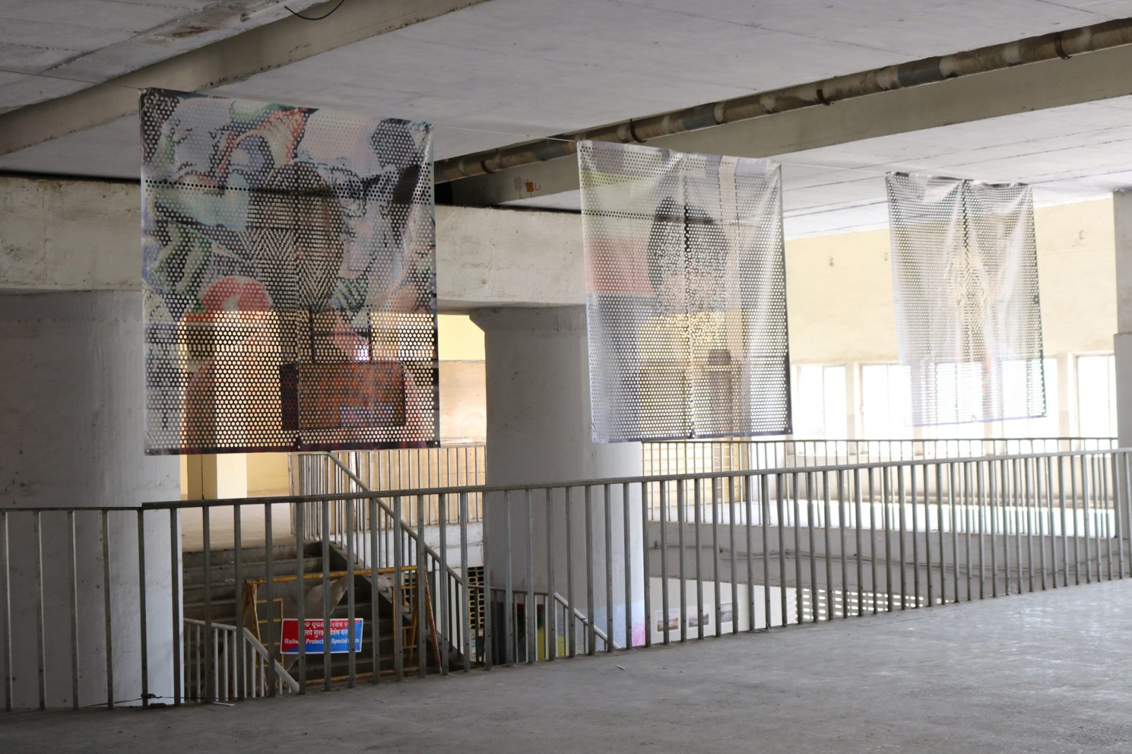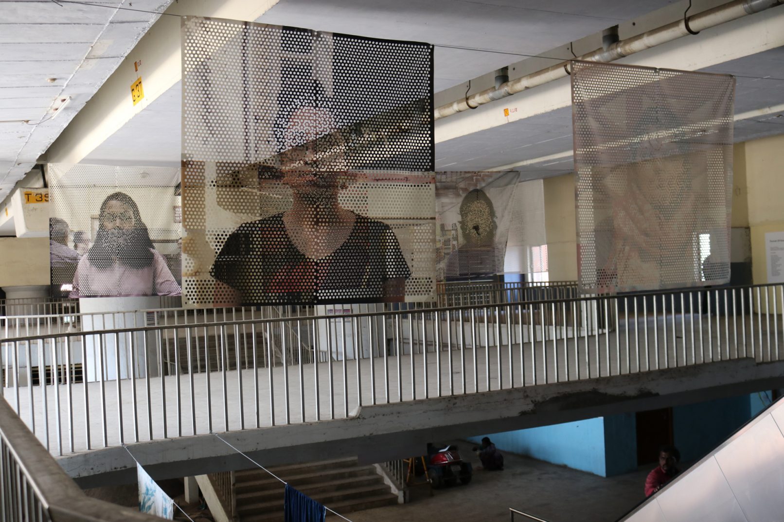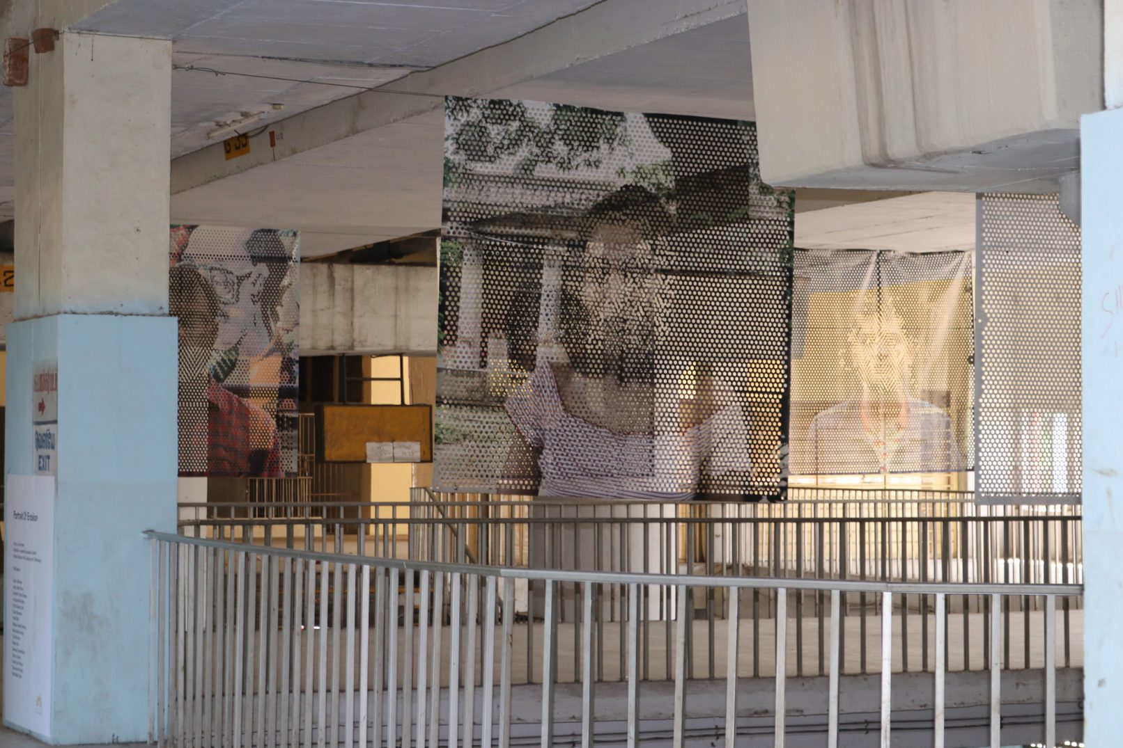 2018年にSrishti Institute Art and Designの生徒たちの参加のもと制作し、バンガロールのRangoll Metro Art Centerで展示された作品。引き続き南チェンナイフォトビエンナーレ2019に出展されたChintadripet鉄道駅でのインスタレーションビュー。16人の生徒たちが不可視生をテーマにバンガロールとチェンナイ両都市の歴史や類似性、またそれらが表出した風景を調査し、その風景を背景して彼らのポートレイトを撮る。そしてその肖像を元に「Portrait of Erosion」という作品を完成させた。全体に開けられた穴によって、ポートレイトは背景を透過し、同化し、生徒たちの肖像それぞれが匿名のレイヤーとして風景の一部になる。それら個人のアイデンティティとそれが形成された風景との不可視な関係性に焦点をあてたインスタレーションになる。顔の部分に穴を重ね、南インドの至る所で見かけたコーラム(家の玄関に描かれた様々な文様の砂絵)やイスラム建築の文様のようなパターンが現れるように、またそのパターンによって顔が見えなくなるようにした。