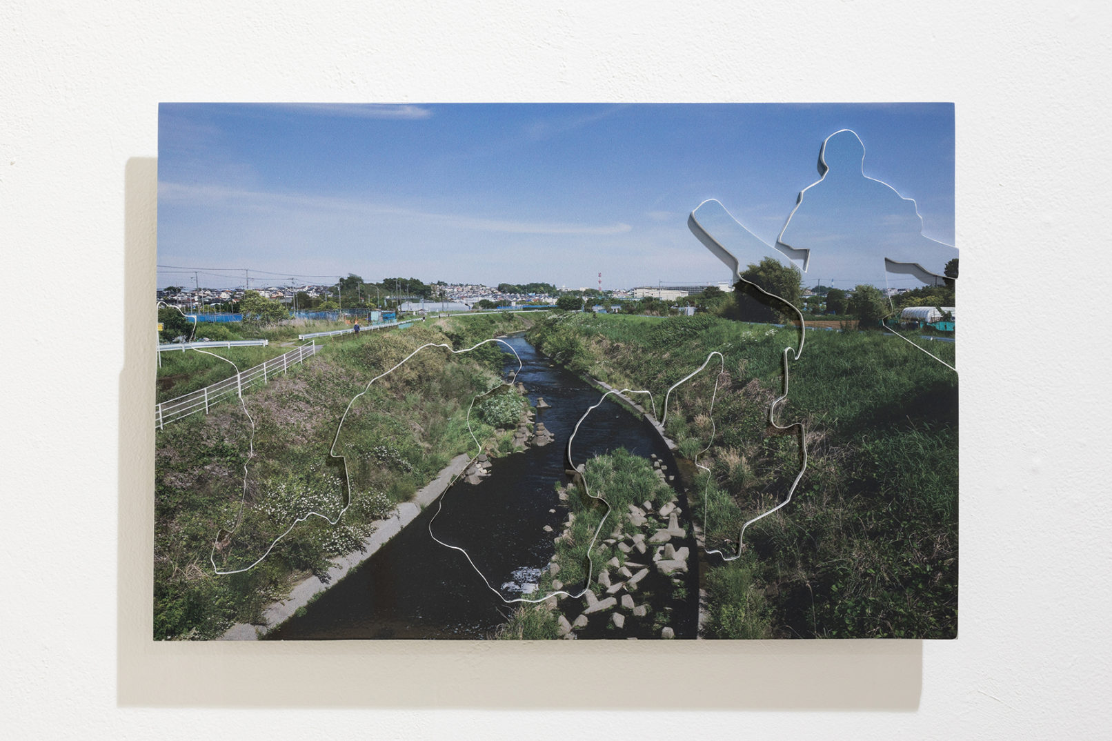 アルミニウムにプリントした横浜市郊外の風景と、ロシアによるウクライナ侵攻に関する新聞記事の写真から引用したシルエットを重ねたレリーフ作品。作者スタジオ周辺のサバービアな日常風景と、遠い場所で同時に起きている戦争が、同化し混じり合う。