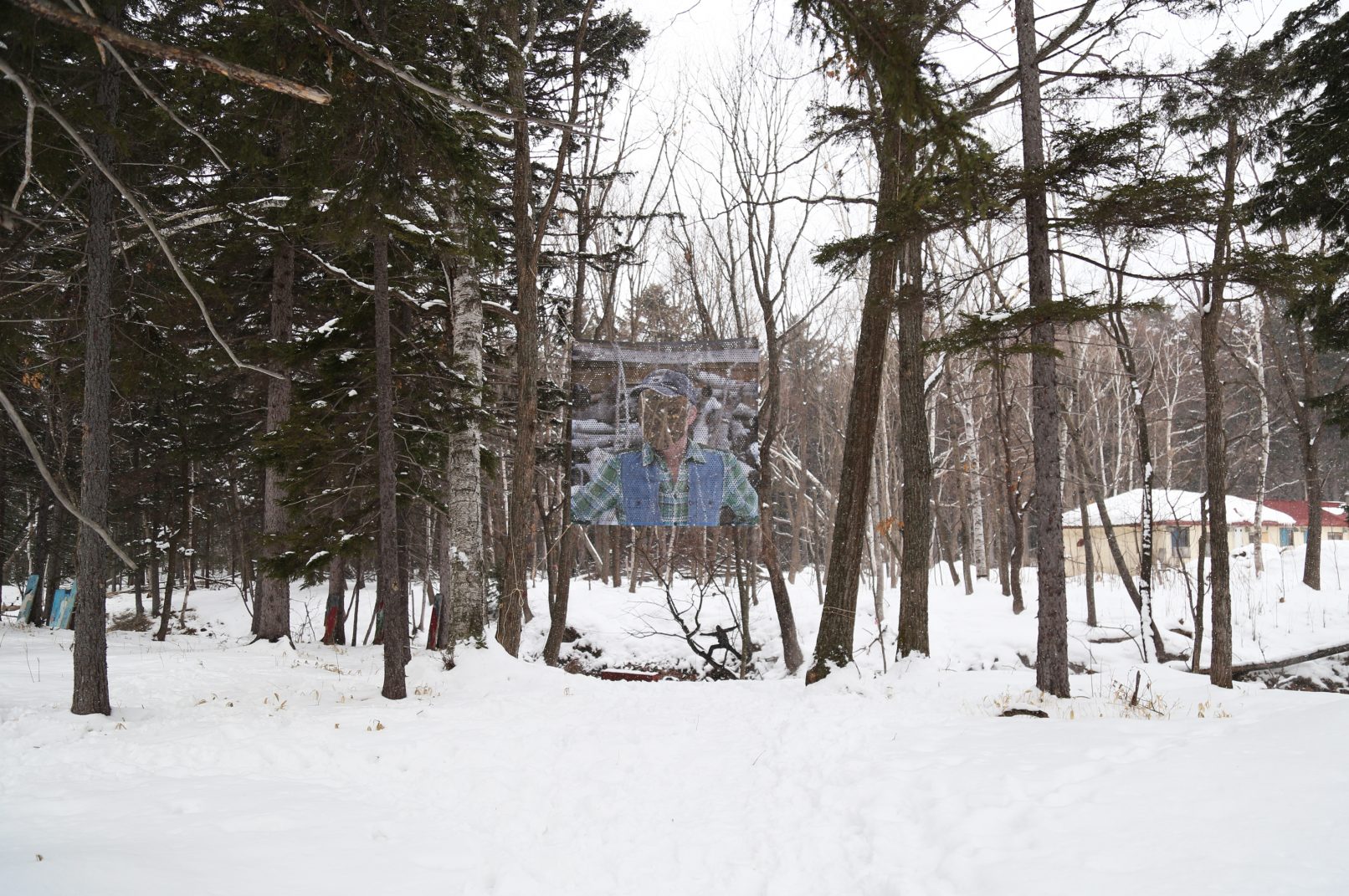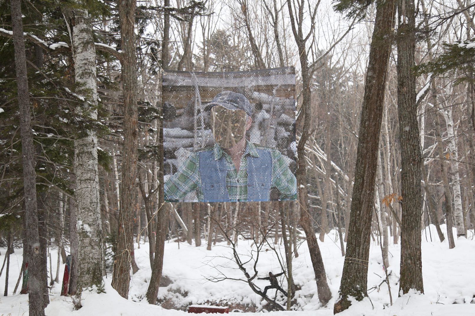 浸食の肖像 / 2018年 / ターポリンにインクジェットプリント もしくは アルミニウムにUV プリント、風景 / 2500×2500mm, 480×880×30mm / 弟子屈極寒芸術祭2018