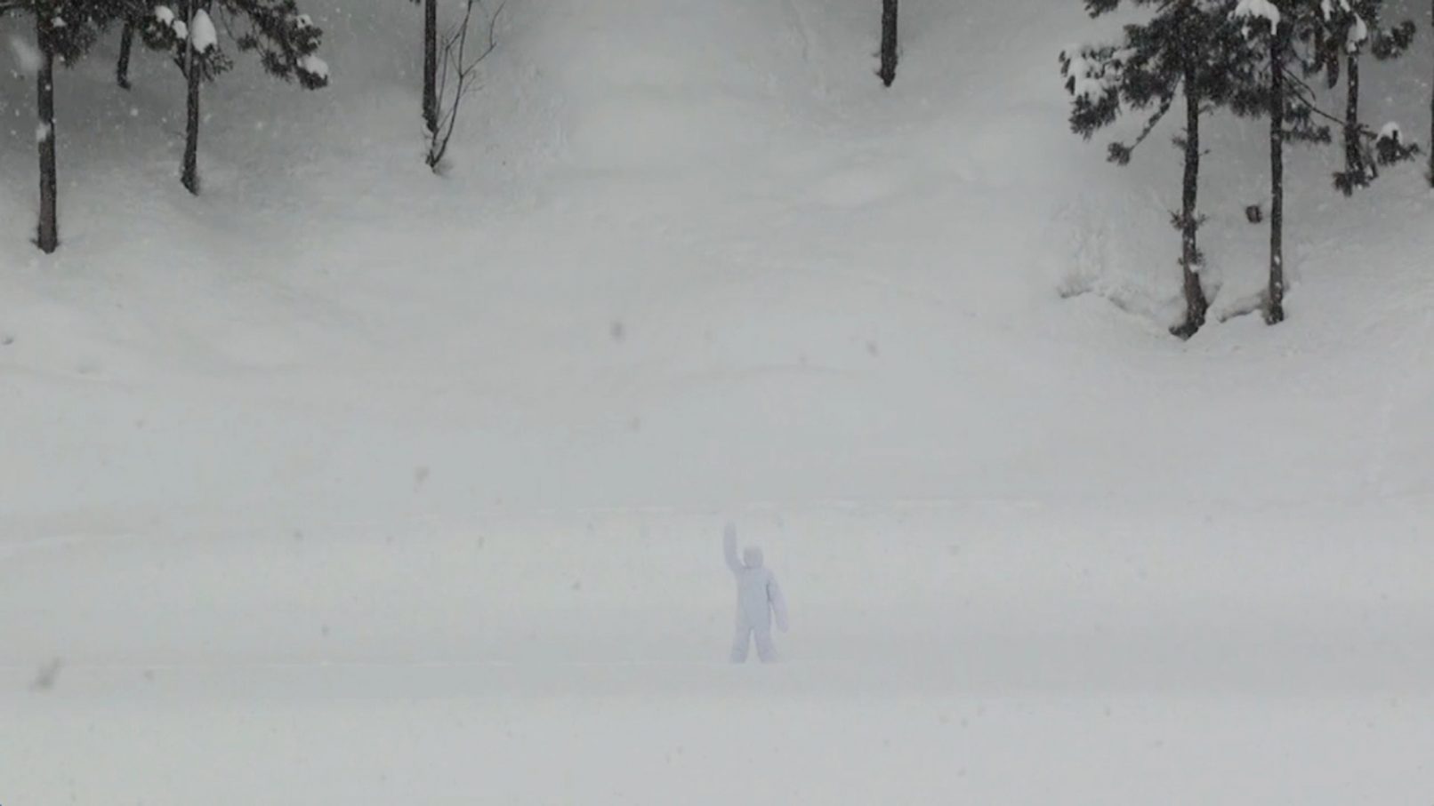 春夏秋冬 、四季の風景 に入り込み、溶け込むパフォーマンス映像。 それはどこにでもあるような、あるいはかつてあったような日本の名もない風景。人はかつて、風に揺れる草木や陰影に畏怖や神秘性を感知し、イマジネーションを投影することで神話やアニミズムを生み出してきた。太古の昔から繰り返されてきた季節の移ろいや、時間そのものを現代の分断された風景の中に見いだすパファーマンス映像。季節ごとに訪れて撮影されたその光景は、土地に伝わる民話のようにほのぼのとしていながら、どこか不気味でよそよそしい「異物感」や「不在」を寓意している。