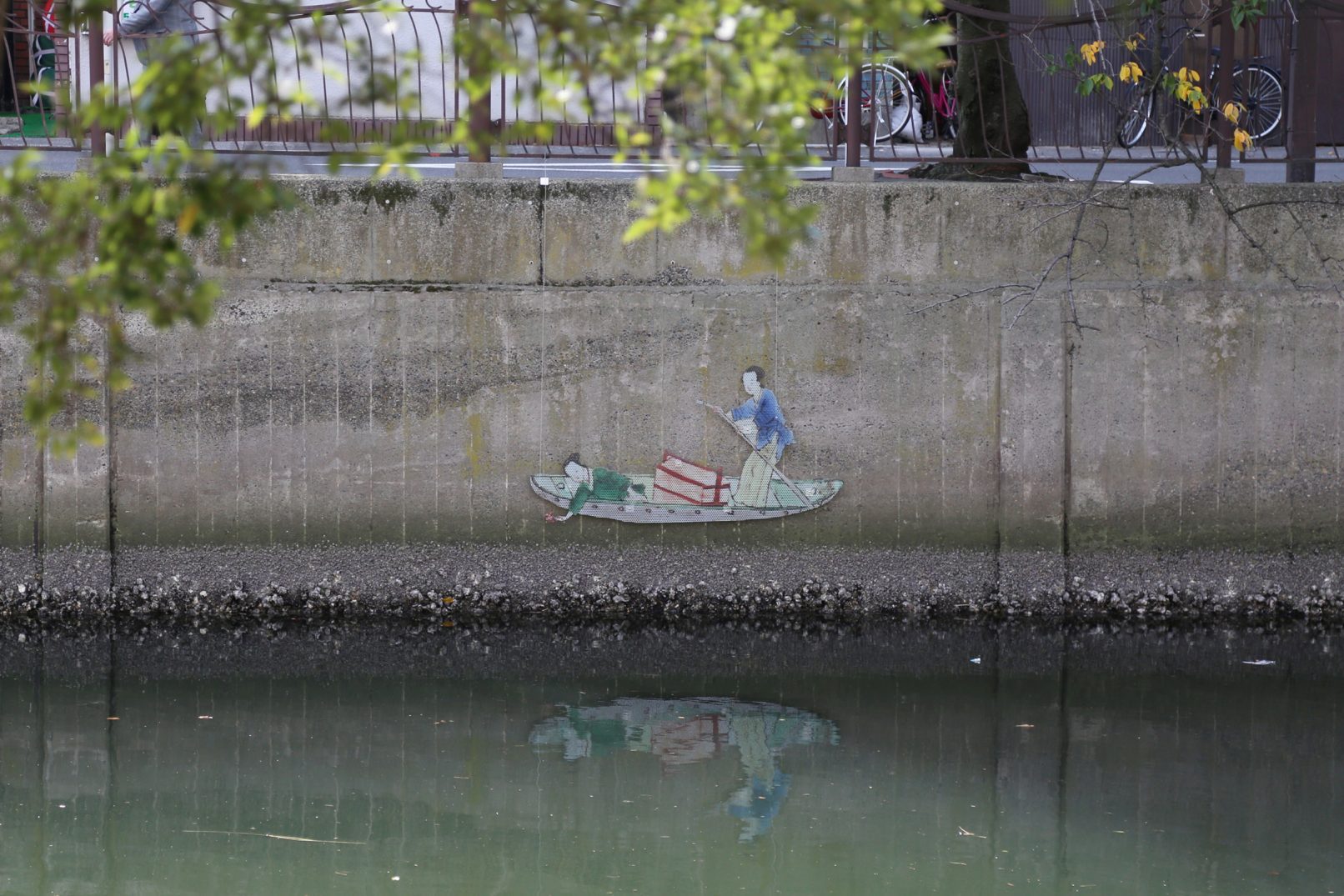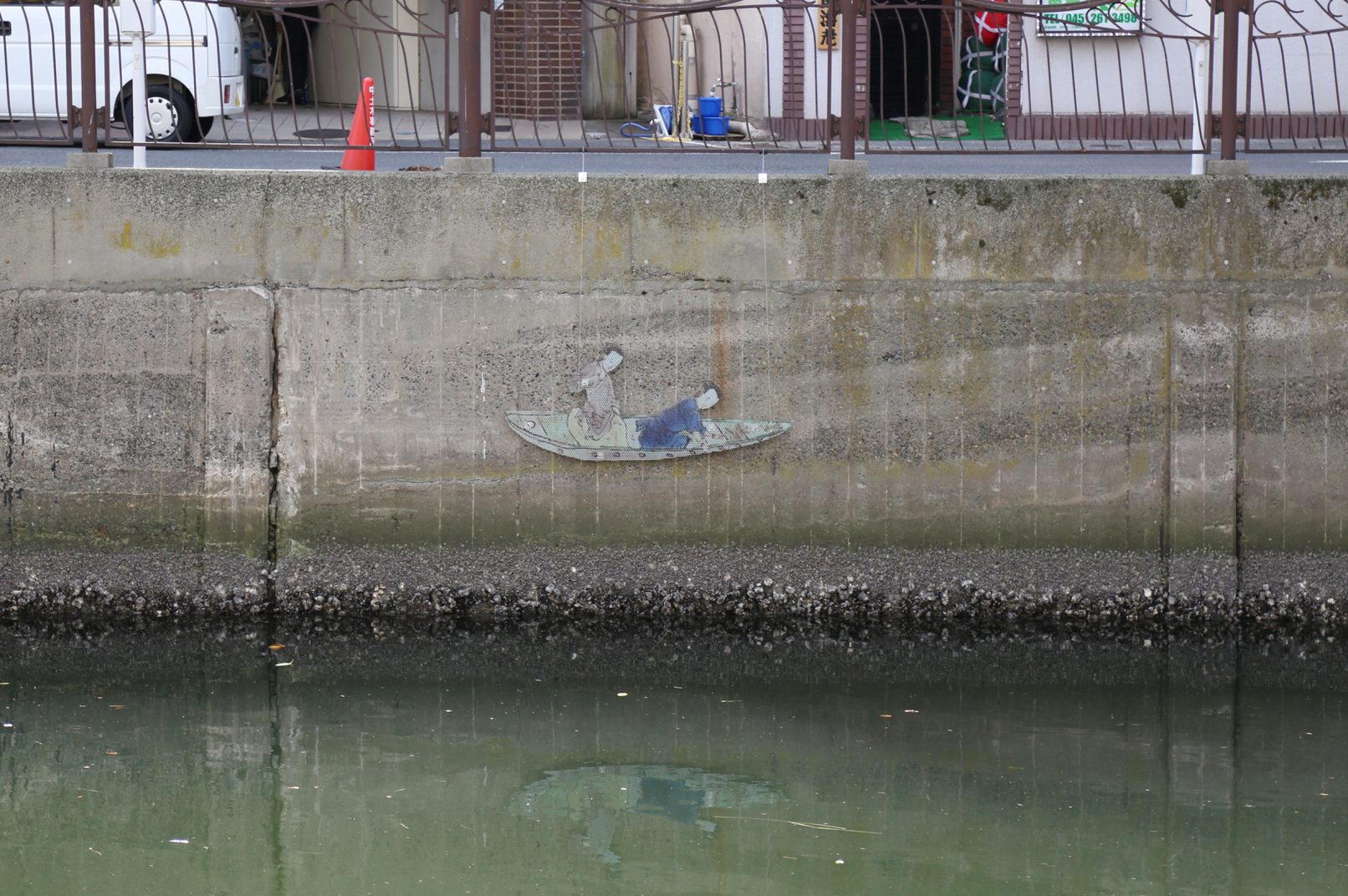 「無名層 – 中国の舟」/2017年/ パンチングアルミニウム, UVプリント ( 17世紀の骨董皿の絵)